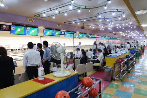 ご参加の皆様 日頃のストレスを発散!ボールとピンのぶつかる音がとても大きかったです!